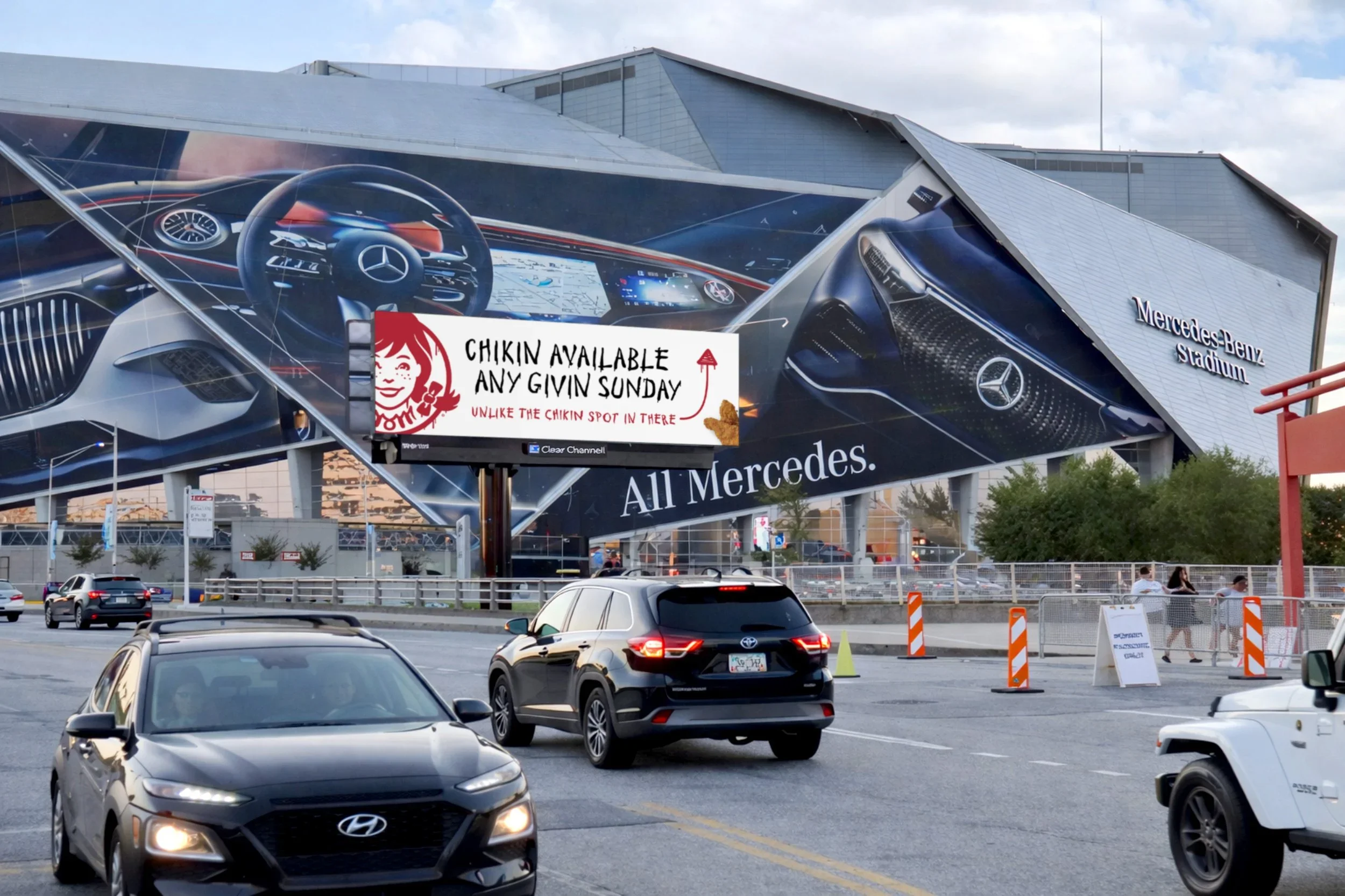 The Chik Fil A is closed inside the Atlanta Falcons stadium in Atlanta. So to announce our new chicken tenders, we pulled up to a fanbase that was in need of a win.